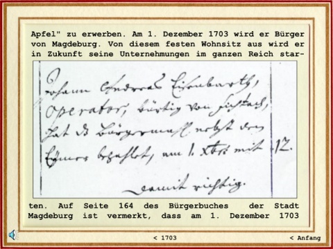 Apfel" zu erwerben. Am 1. Dezember 1703 wird er Bürger