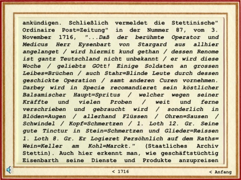 November 1716, "...Daß der berühmte Operator und