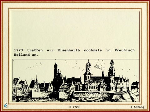 1723 treffen wir Eisenbarth nochmals in Preußisch Holland an. < 1723 < Anfang