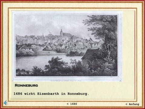 Ronneburg 1686 wirkt Eisenbarth in Ronneburg. < 1686 < Anfang