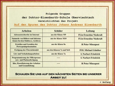 Fertigung der Übersichtstafel aus den Klassen 7a und 9a/b FOL Michael Günther