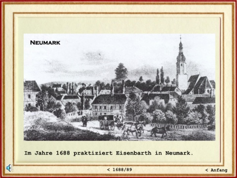 Neumark Im Jahre 1688 praktiziert Eisenbarth in Neumark. < 1688/89 < Anfang